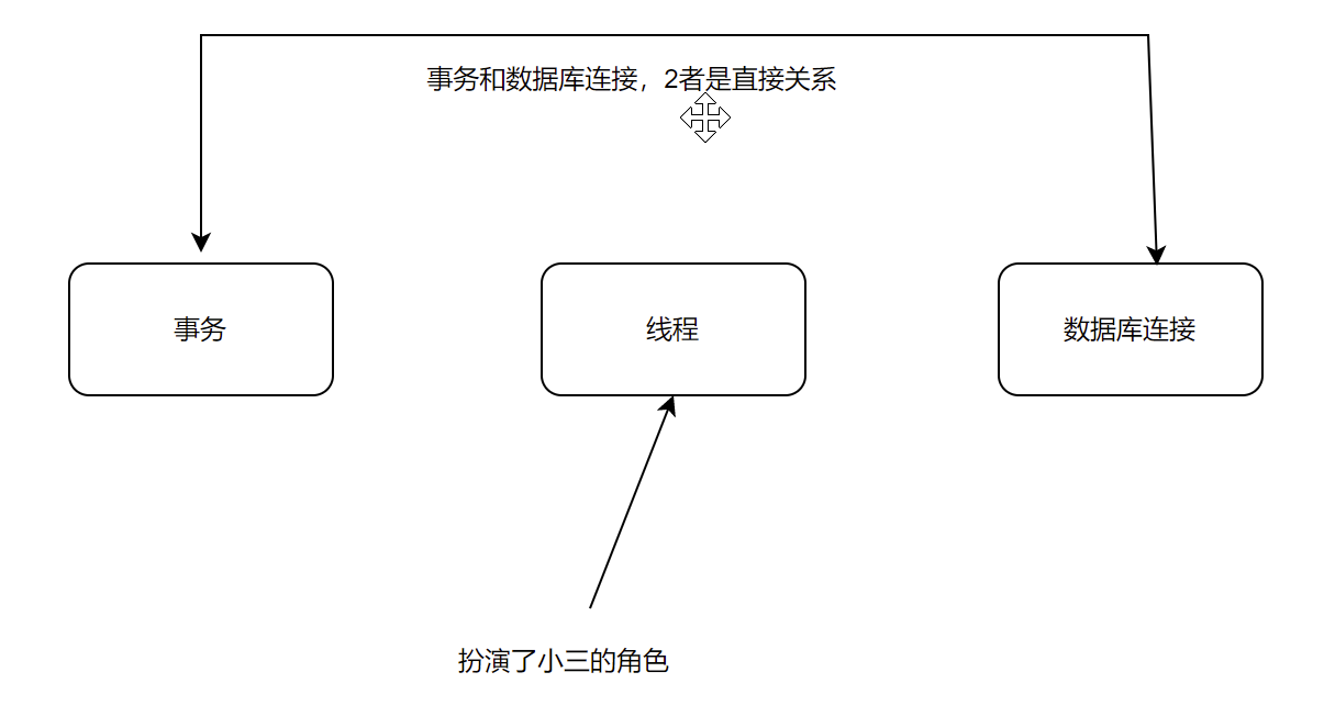 如果此时事务B中要执行commit,因为事务B使用的是数据库连接2,所以,直接在数据库层面完成了提交,但是接下来在事务A中,突然中断了,导致事务A要求回滚,数据库连接1就执行了回滚